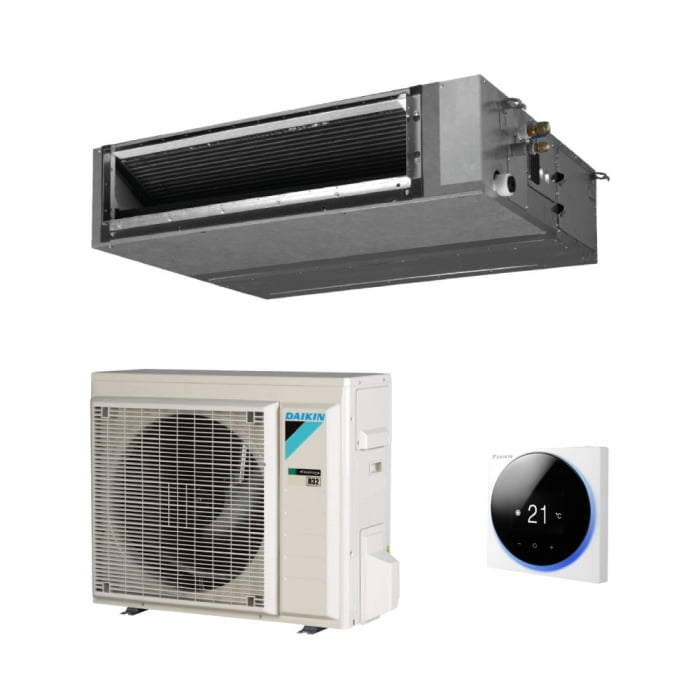 Aparat de aer condiționat duct Daikin SkyAir Alpha-series Bluevolution, 24000 BTU, Inverter, telecomandă inclusă, eficiență energetică ridicată și confort total pentru spații comerciale și rezidențiale.