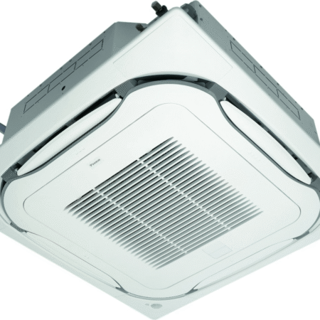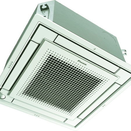 Aparat de aer condiționat tip casetă Daikin SkyAir Alpha-series Bluevolution, 24000 BTU, Inverter, cu panel și telecomandă incluse – soluția ideală pentru climatizarea eficientă a spațiilor comerciale și rezidențiale.